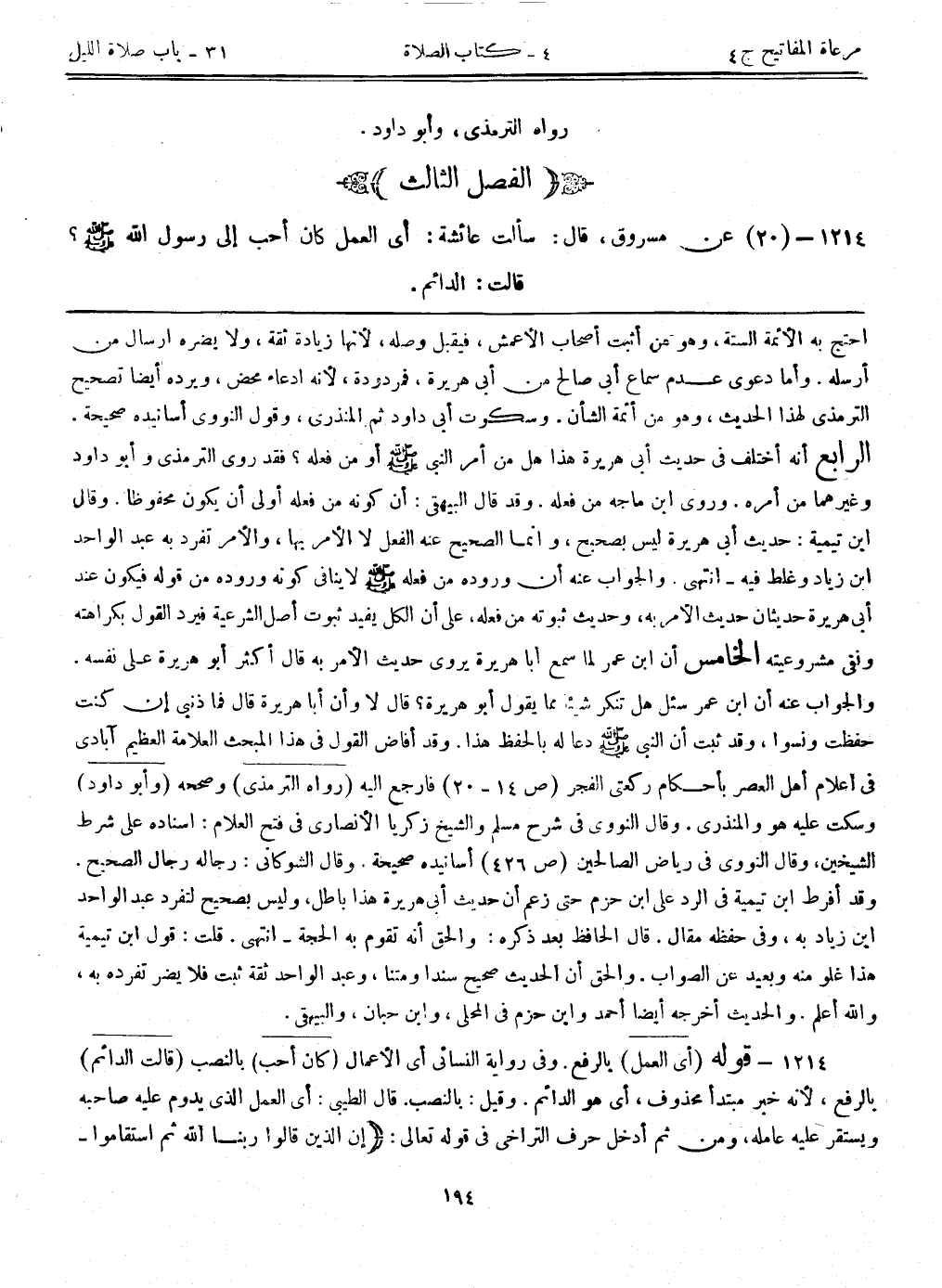 كتاب مرعاة المفاتيح شرح مشكاة المصابيح (اسم الجزء: 4)