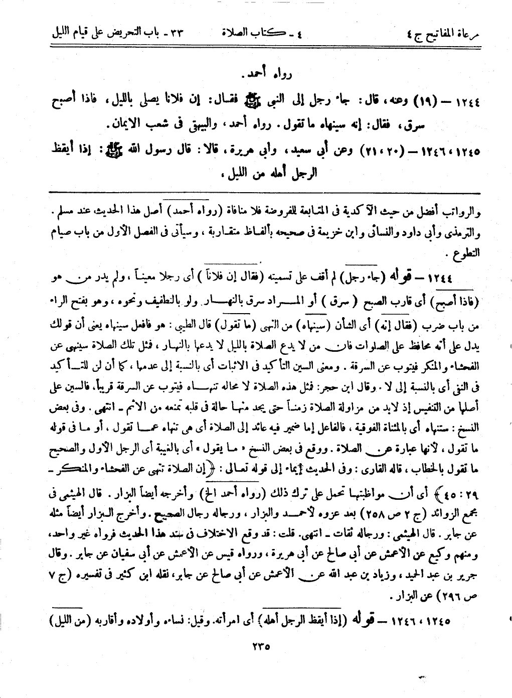 1245، 1246- قوله: (إذا أيقظ الرجل أهله) أي امرأته. وقيل: نساءه وأولاده وأقاربه. (من الليل)