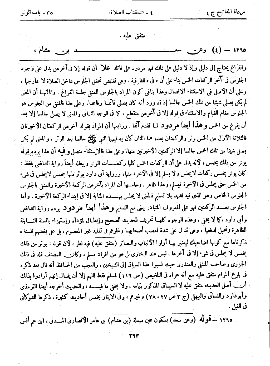 1265- قوله: (وعن سعد) بسكون عين مهملة. (بن هشام) بن عامر الأنصاري المدني، ابن عم أنس