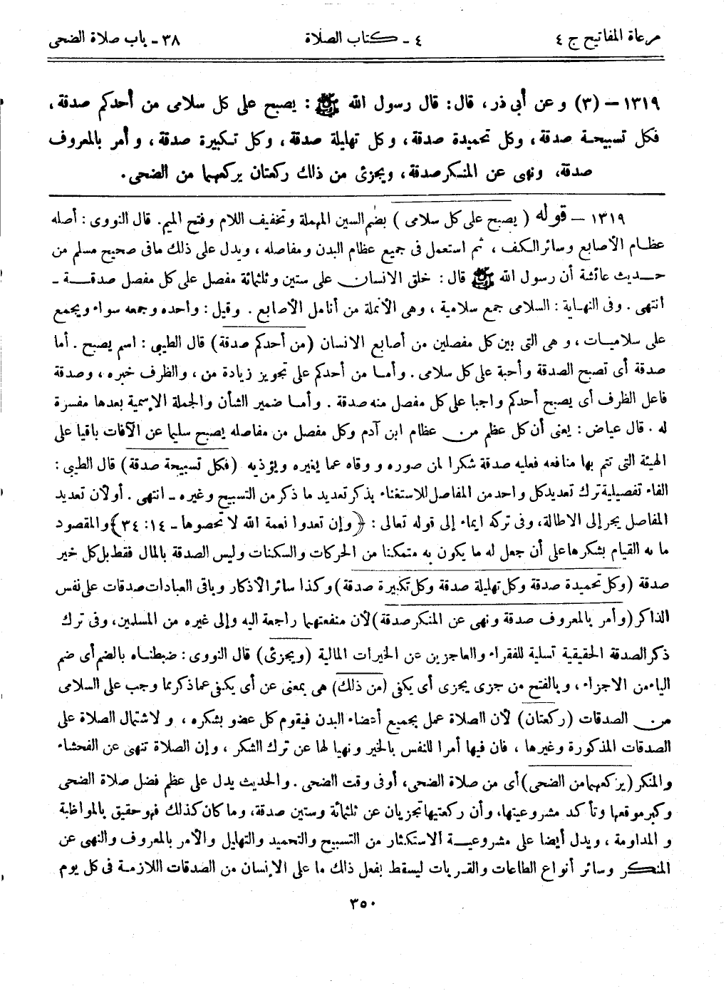 1319- (3) وعن أبي ذر قال: قال رسول الله - صلى الله عليه وسلم -: ((يصبح على كل سلامى من أحدكم صدقة،