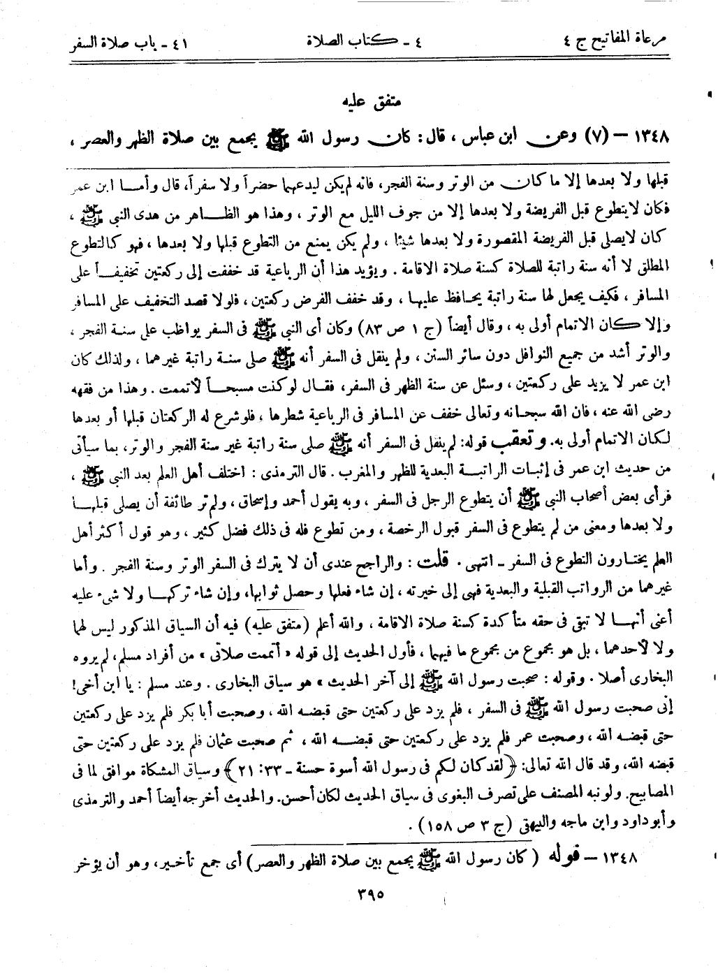 1348- (7) وعن ابن عباس، قال: ((كان رسول الله - صلى الله عليه وسلم - يجمع بين صلاة الظهر والعصر،