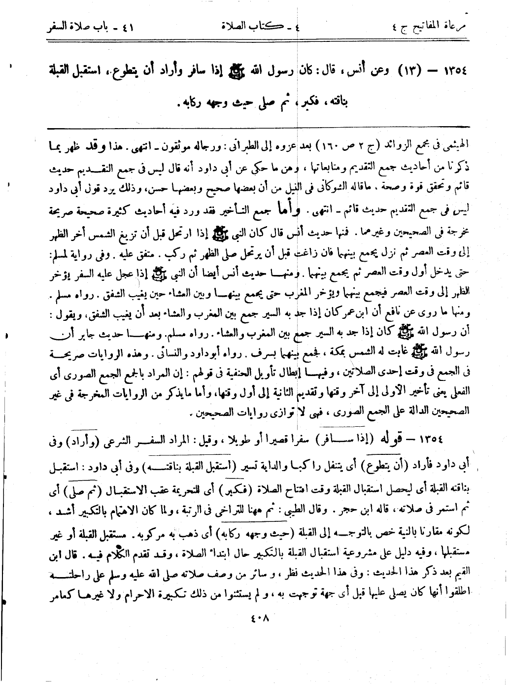 1354- (13) وعن أنس، قال: ((كان رسول الله - صلى الله عليه وسلم - إذا سافر وأراد أن يتطوع، استقبل القبلة