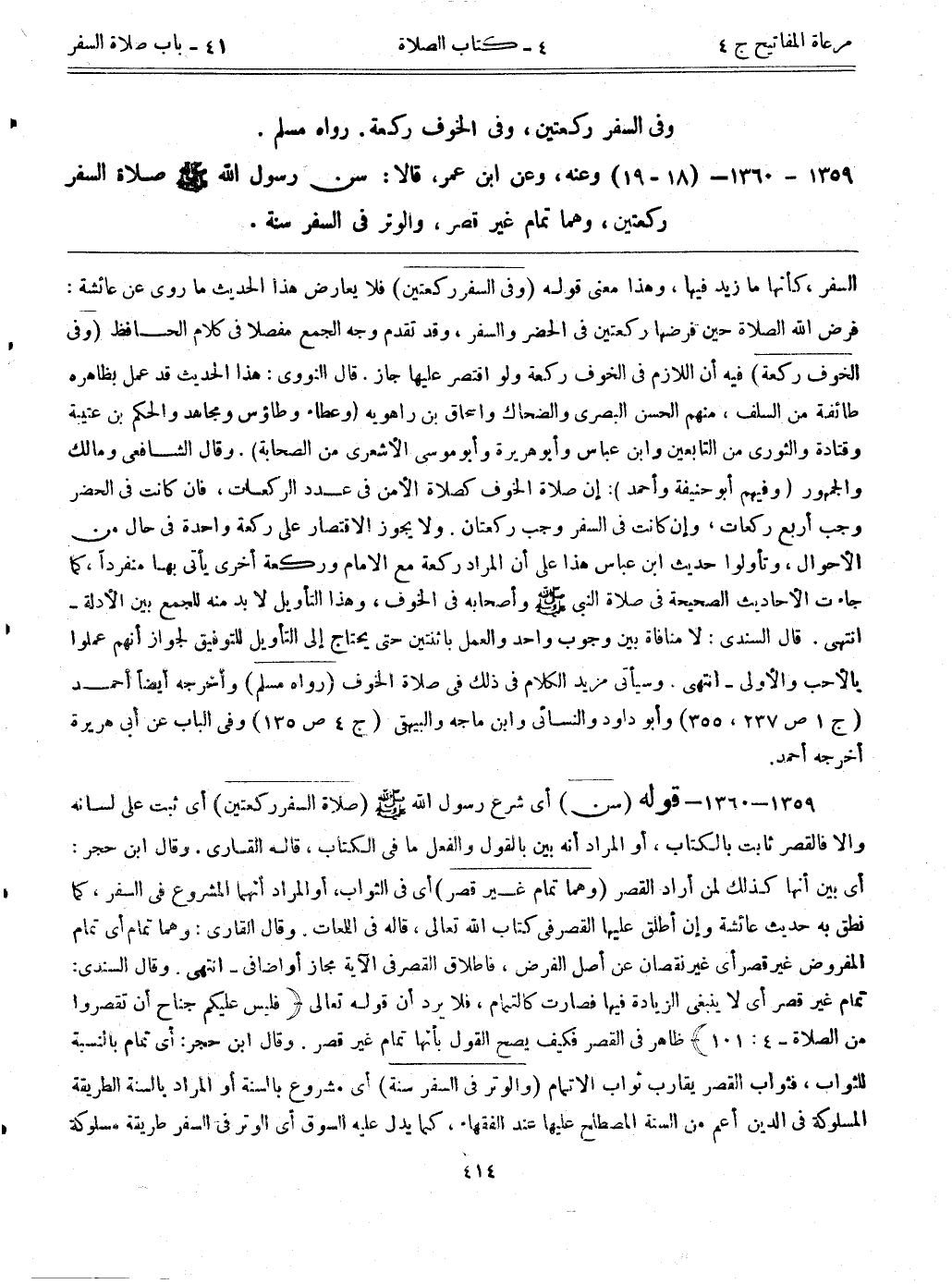 1359- 1360- (18-19) وعنه، وعن ابن عمر، قالا: ((سن رسول الله - صلى الله عليه وسلم - صلاة السفر ركعتين، وهما تمام غير قصر، والوتر في السفر سنة))