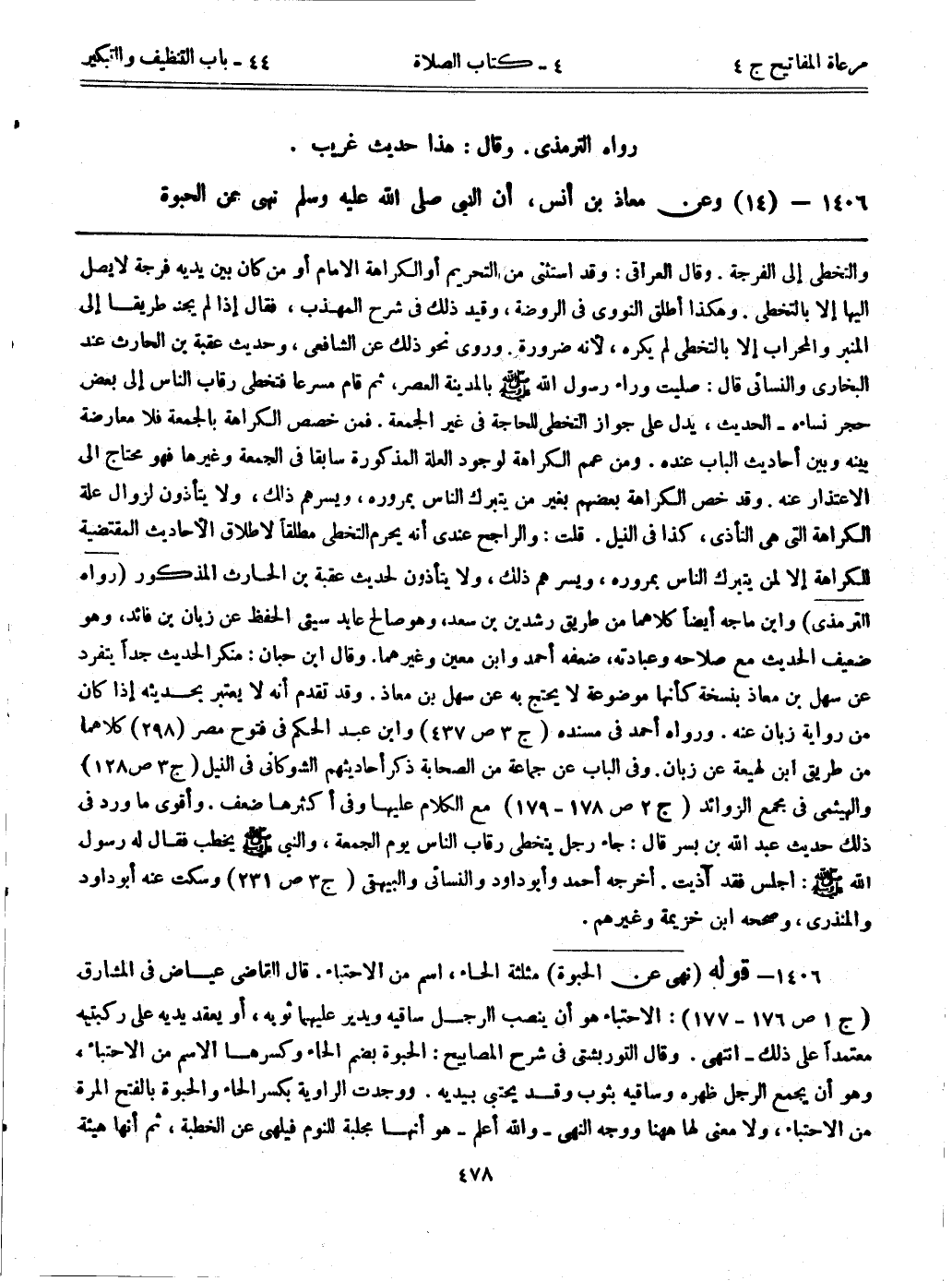 1406- (14) وعن معاذ بن أنس، ((أن النبي صلى الله عليه وسلم نهى عن الحبوة