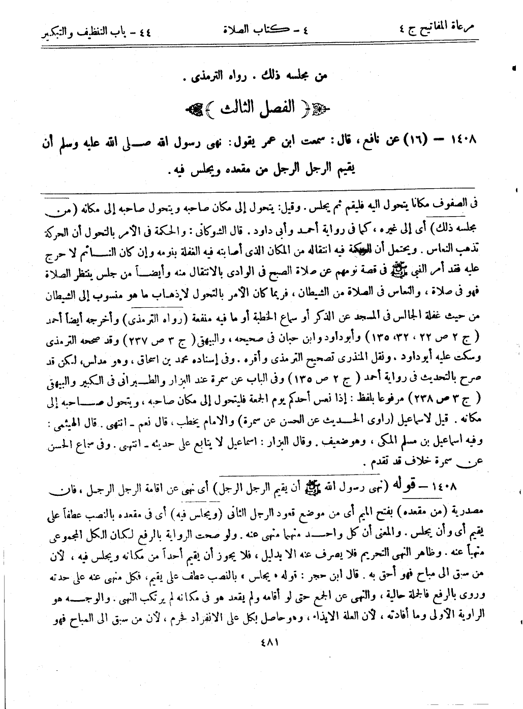 1408- (16) عن نافع، قال: سمعت ابن عمر يقول: ((نهى رسول الله صلى الله عليه وسلم أن يقيم الرجل الرجل من مقعده ويجلس فيه.