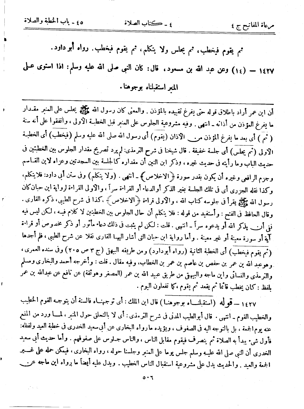 1427- (14) وعن عبد الله بن مسعود، قال: ((كان النبي صلى الله عليه وسلم إذا استوى على المنبر استقبلناه بوجوهنا.