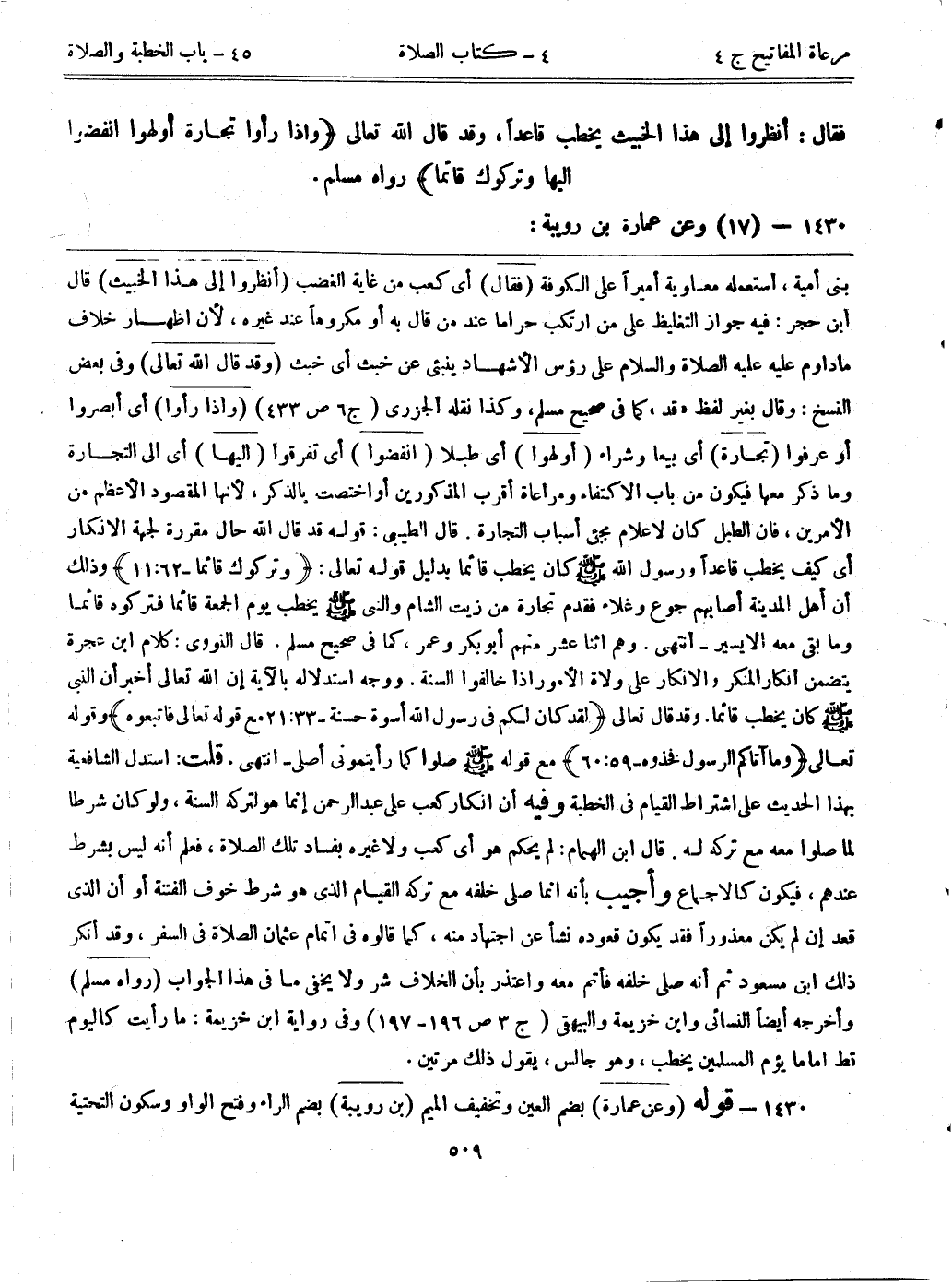 1430- قوله: (وعن عمارة) بضم العين وتخفيف الميم. (بن رويبة) بضم الراء وفتح الواو وسكون التحتية