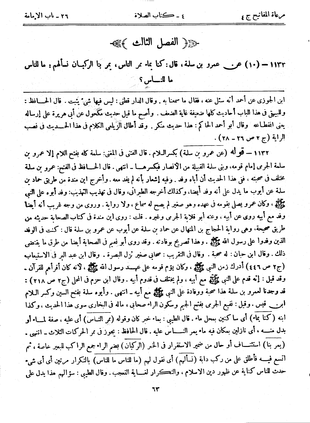 1132- (10) عن عمرو بن سلمة قال: ((كنا بماء ممر الناس، يمر بنا الركبان نسألهم: ما للناس، ما للناس؟