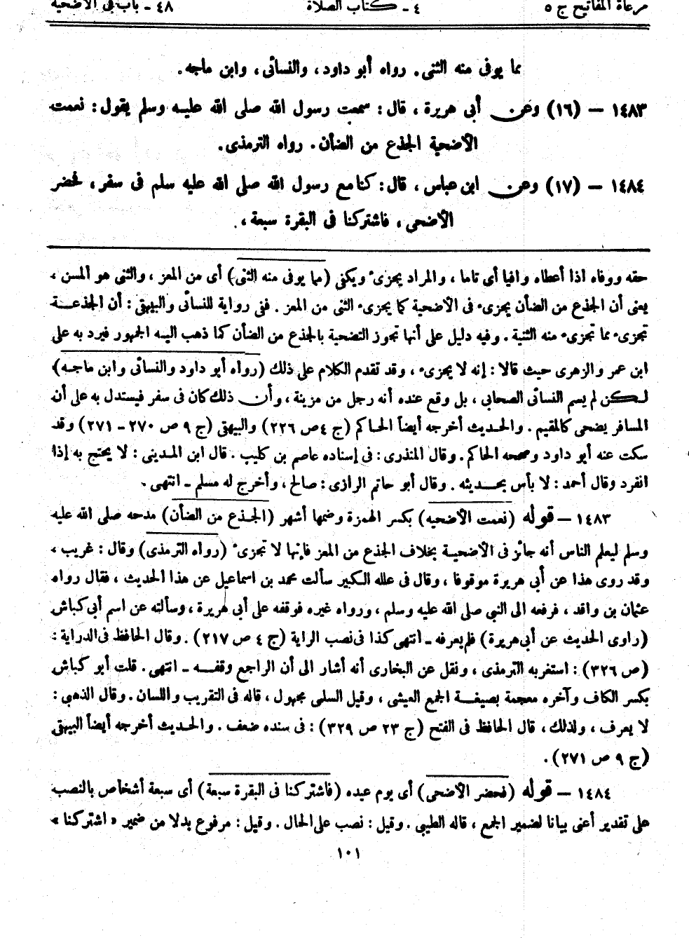 1483- (16) وعن أبي هريرة قال: سمعت رسول الله - صلى الله عليه وسلم - يقول: ((نعمت الأضحية الجذع من الضان)) رواه الترمذي.