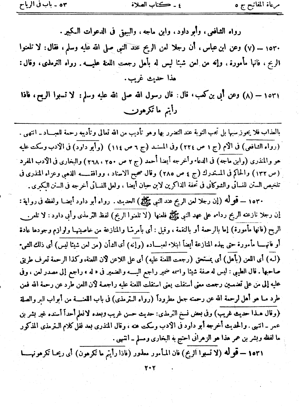1531- (8) وعن أبي بن كعب، قال: قال رسول الله - صلى الله عليه وسلم -: ((لا تسبوا الريح، فإذا رأيتم ما تكرهون