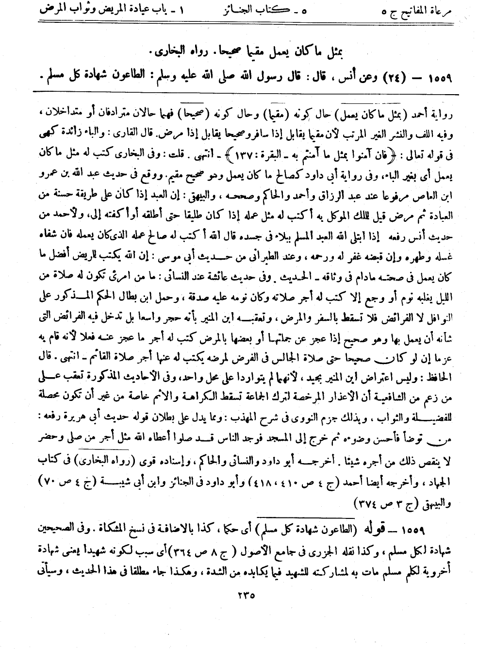 1559 - (24) وعن أنس، قال: قال رسول الله صلى الله عليه وسلم: ((الطاعون شهادة كل مسلم))