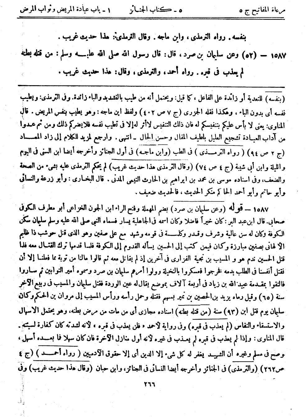 1587 - (52) وعن سليمان بن صرد، قال: قال رسول الله صلى الله عليه وسلم: ((من قتله بطنه لم يعذب في قبره)) رواه أحمد، والترمذي، وقال: هذا حديث غريب.