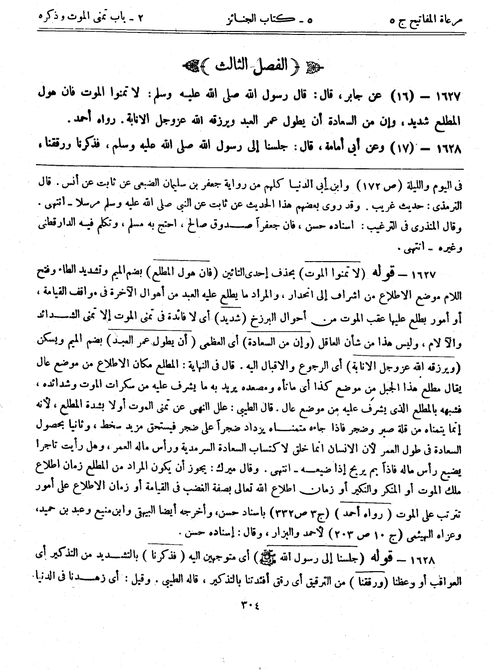 1627- (16) عن جابر، قال: قال رسول الله صلى الله عليه وسلم: ((لا تمنوا الموت فإن هول المطلع شديد، وإن من السعادة أن يطول عمر العبد ويرزقه الله عزوجل الإنابة)) رواه أحمد.
