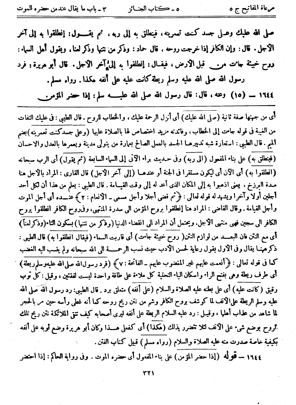 1644- (15) وعنه، قال: قال رسول الله صلى الله عليه وسلم: ((إذا حضر المؤمن