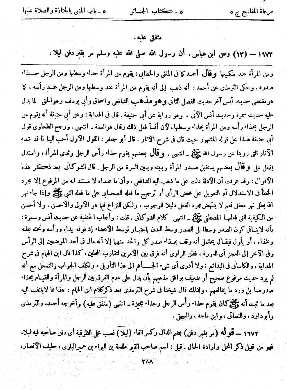 1672- قوله: (مر بقبر دفن) بضم الدال وكسر الفاء. (ليلاً) نصب على الظرفية أي دفن صاحبه فيه ليلاً، فهو من قبيل ذكر المحل وإرادة الحال. قيل: اسم صاحب القبر طلحة بن البراء بن عمير البلوى، حليف الأنصار،