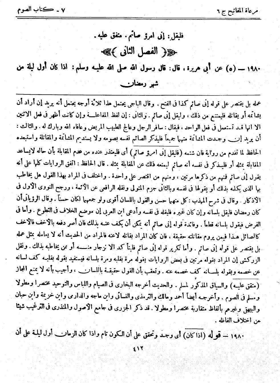 1980- (5) عن أبي هريرة، قال: قال رسول الله صلى الله عليه وسلم: ((إذا كان أول ليلة من شهر رمضان