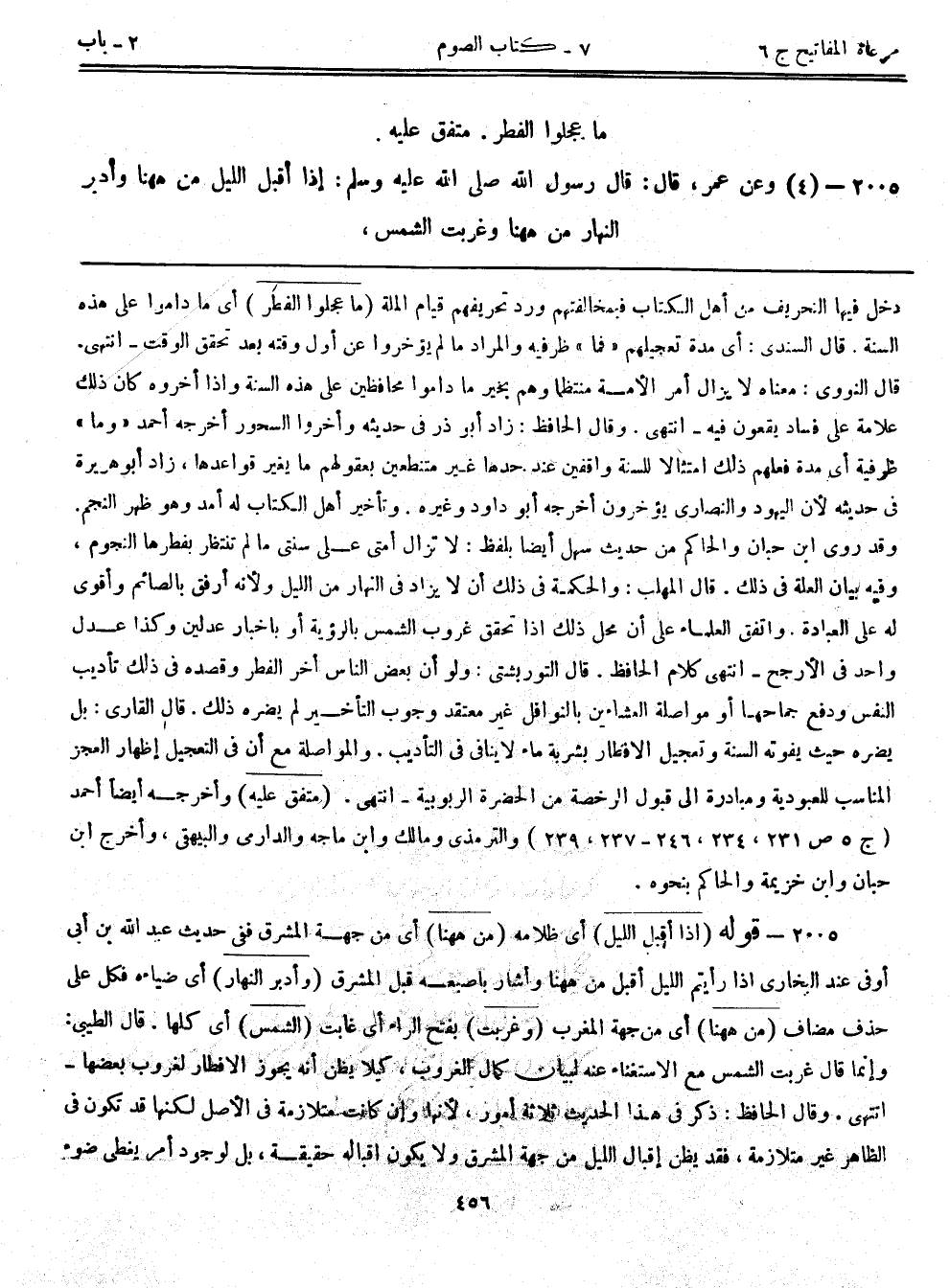 2005- (4) وعن عمر، قال: قال رسول الله صلى الله عليه وسلم: ((إذا أقبل الليل من ههنا وأدبر النهار من ههنا وغربت الشمس