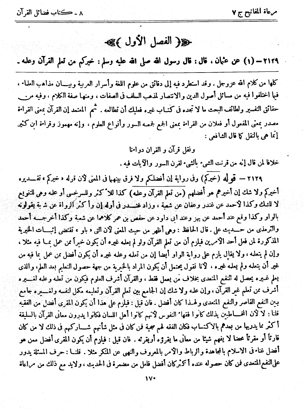 2129- (1) عن عثمان، قال: قال رسول الله صلى اله عليه وسلم: ((خيركم من تعلم القرآن وعلمه))