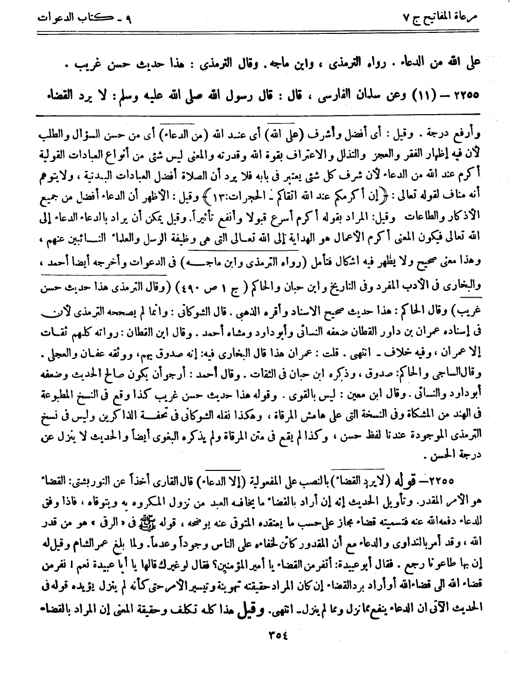 2255- (11) وعن سلمان الفارسي، قال: قال رسول الله صلى الله عليه وسلم: ((لا يرد القضاء
