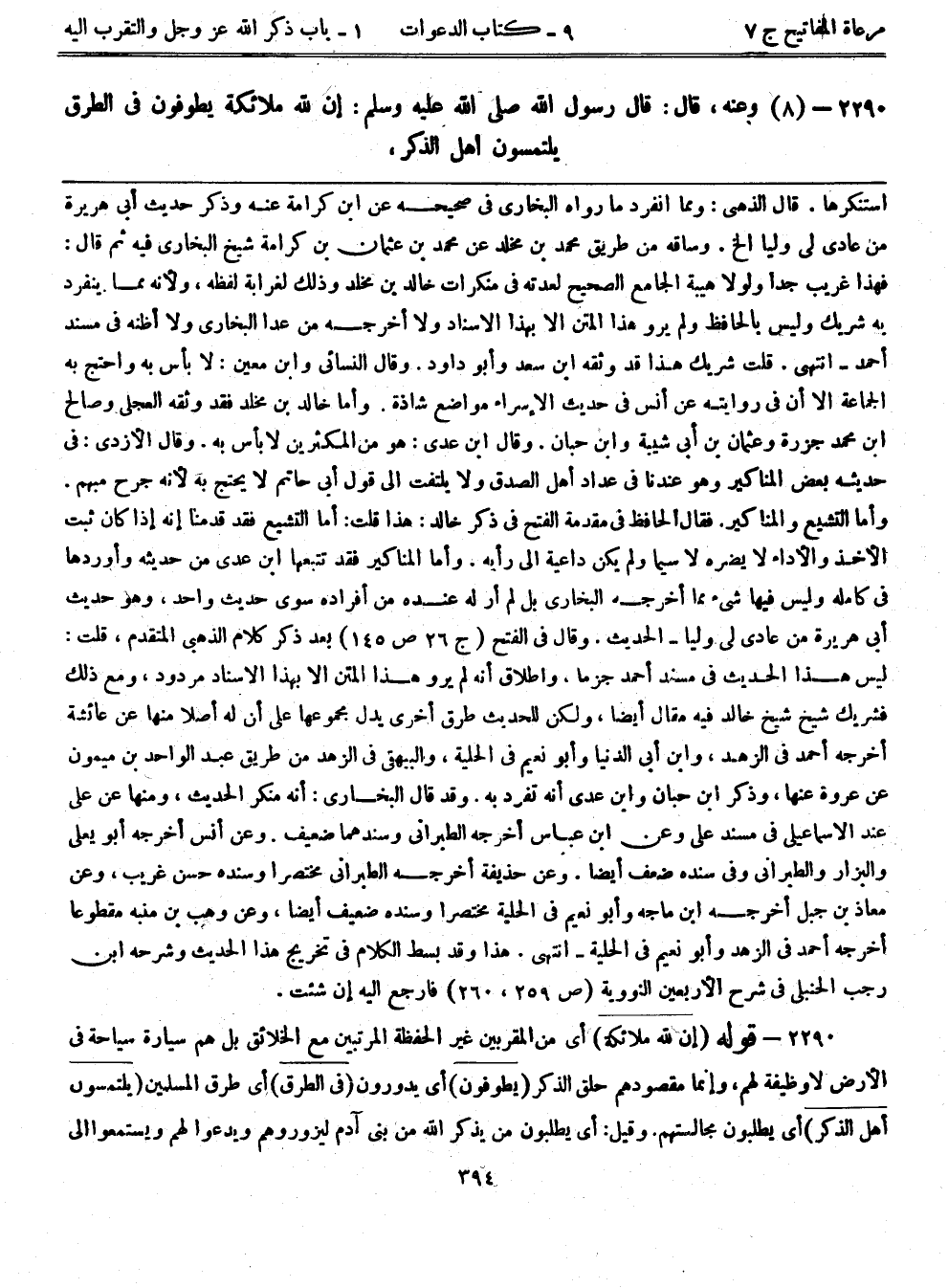 2290- (8) وعنه، قال: قال رسول الله صلى الله عليه وسلم: ((إن لله ملائكة يطوفون في الطرق يلتمسون أهل الذكر،
