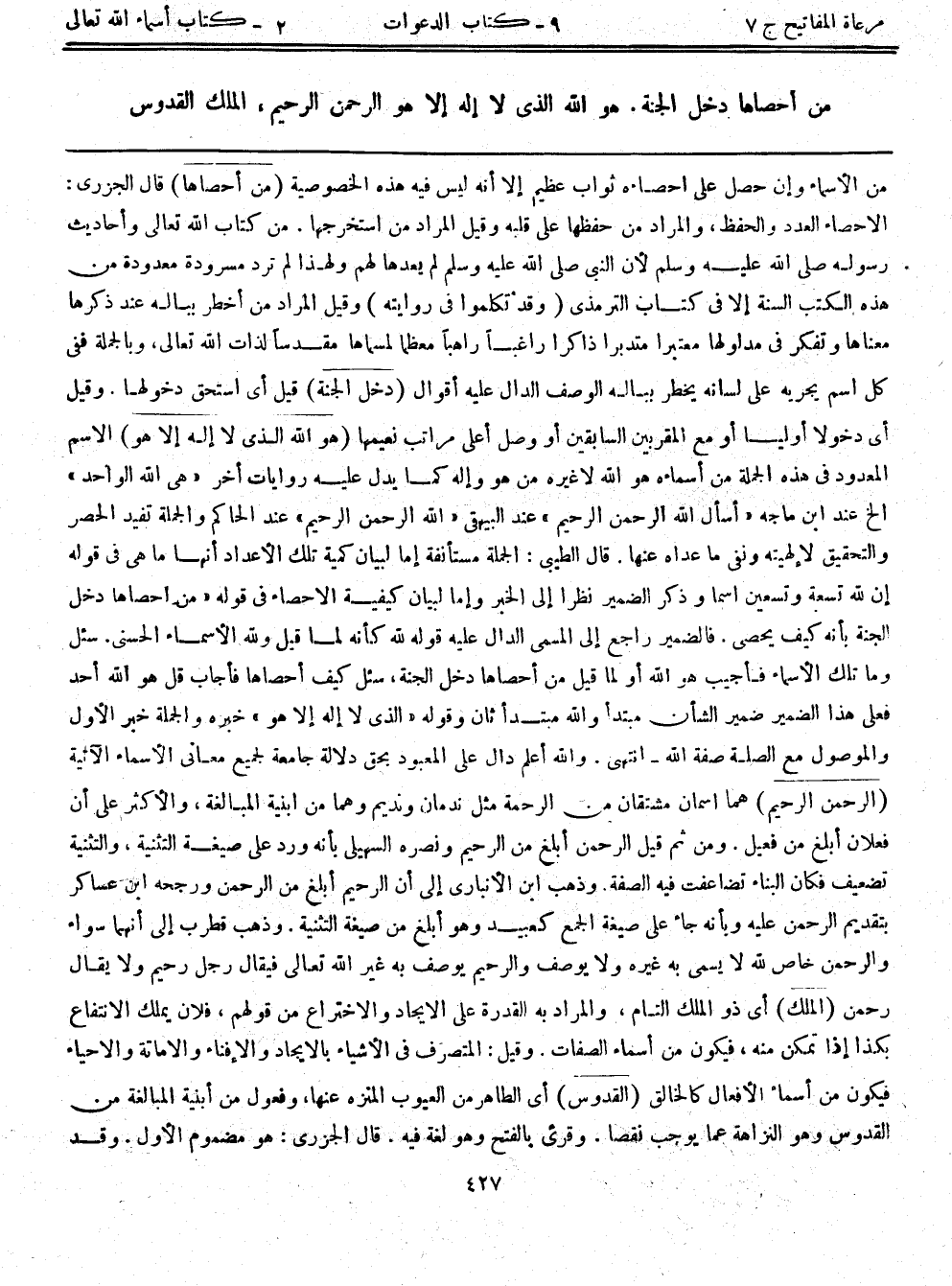 من أحصاها دخل الجنة. هو الله الذي لا إله إلا هو الرحمن الرحيم، الملك القدوس