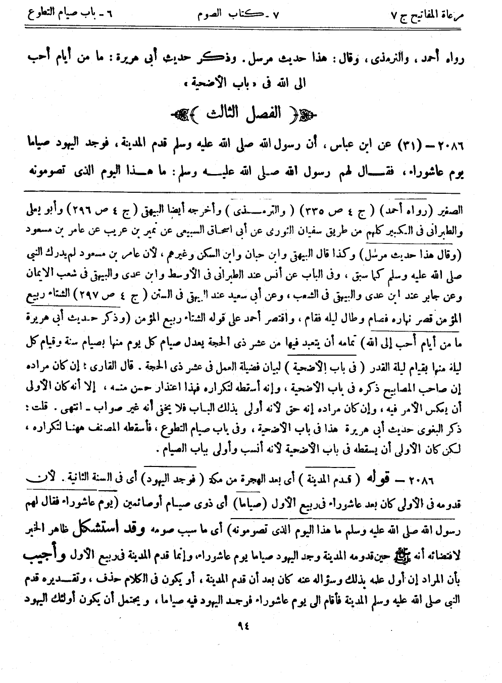 2086- (31) عن ابن عباس، ((أن رسول الله صلى الله عليه وسلم قدم المدينة فوجد اليهود صياماً يوم عاشوراء، فقال لهم رسول الله صلى الله عليه وسلم: ما هذا اليوم الذي تصومونه فقالوا: هذا يوم عظيم: أنجى الله فيه موسى وقومه،