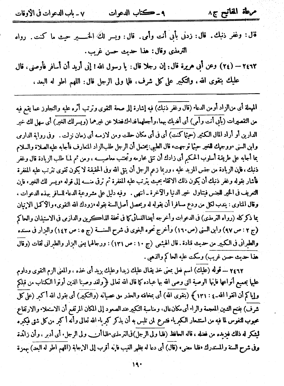 2462- (24) عَنْ أَبِي هُرَيْرَةَ قال: إنَّ رَجُلًا قَالَ: يَا رَسُولَ اللَّهِ إِنِّي أُرِيدُ أَنْ أُسَافِرَ فَأَوْصِنِي. قَالَ: عَلَيْكَ بِتَقْوَى اللَّهِ وَالتَّكْبِيرِ عَلَى كُلِّ شَرَفٍ. فَلَمَّا وَلَّى الرَّجُلُ قَالَ: اللَّهُمَّ اطْوِ لَهُ البعد