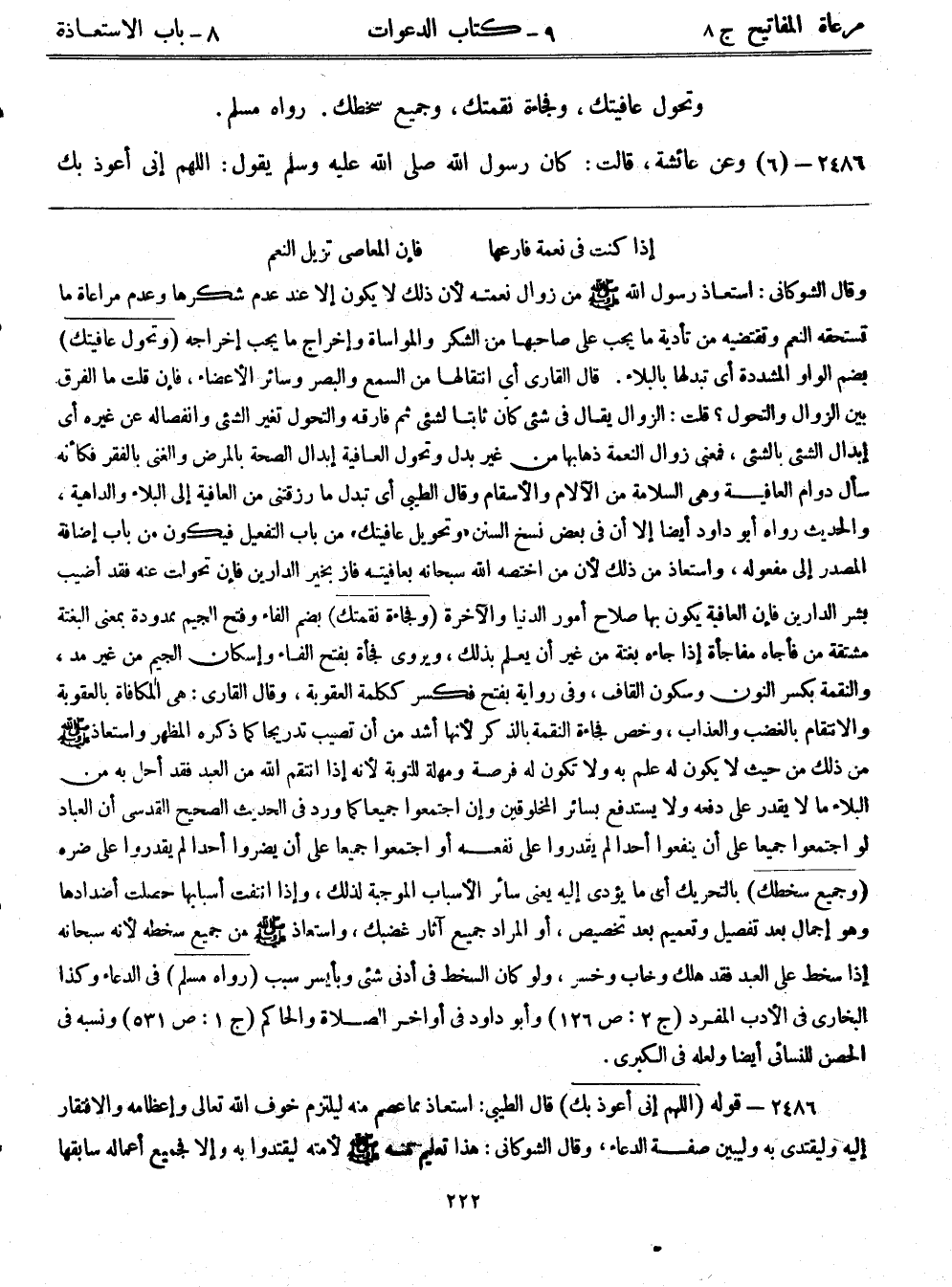 2486- (6) عَنْ عَائِشَةَ قَالتْ: كَانَ رَسُولُ اللَّهِ صَلَّى اللَّهُ عَلَيْهِ وَسَلَّمَ يَقُولُ: اللَّهُمَّ إِنِّي أَعُوذُ بِكَ