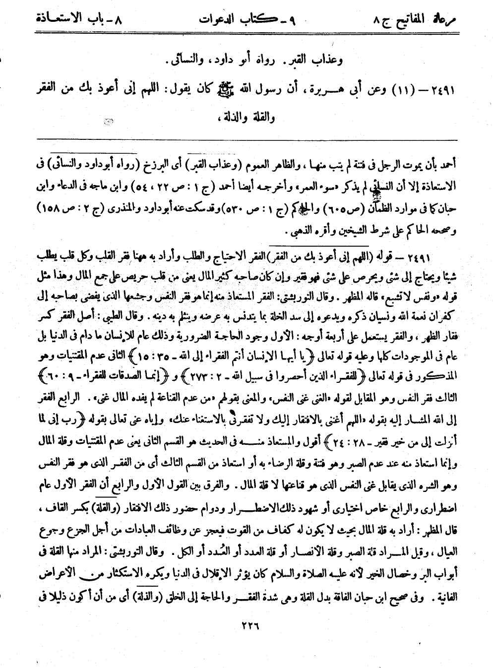 2491- (11) وعَنْ أَبِي هُرَيْرَةَ أَنَّ رَسُولِ اللَّهِ - صلى الله عليه وسلم - كَانَ يَقُولُ: اللَّهُمَّ إِنِّي أَعُوذُ بِكَ مِنْ الْفَقْرِ وَالْقِلَّةِ وَالذِّلَّةِ