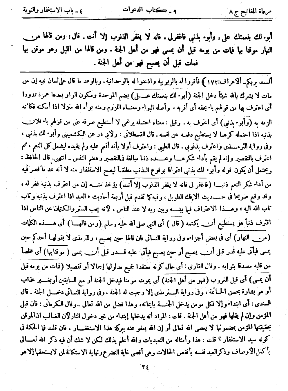 أَبُوءُ لَكَ بِنِعْمَتِكَ عَلَيَّ وَأَبُوءُ بِذَنْبِي فَاغْفِرْ لِي فَإِنَّهُ لَا يَغْفِرُ الذُّنُوبَ إِلَّا أَنْتَ. قَالَ: وَمَنْ قَالَهَا مِنْ النَّهَارِ مُوقِنًا بِهَا فَمَاتَ مِنْ يَوْمِهِ قَبْلَ أَنْ يُمْسِيَ فَهُوَ مِنْ أَهْلِ الْجَنَّةِ. وَمَنْ قَالَهَا مِنْ اللَّيْلِ وَهُوَ مُوقِنٌ بِهَا فَمَاتَ قَبْلَ أَنْ يُصْبِحَ فَهُوَ مِنْ أَهْلِ الْجَنَّةِ.