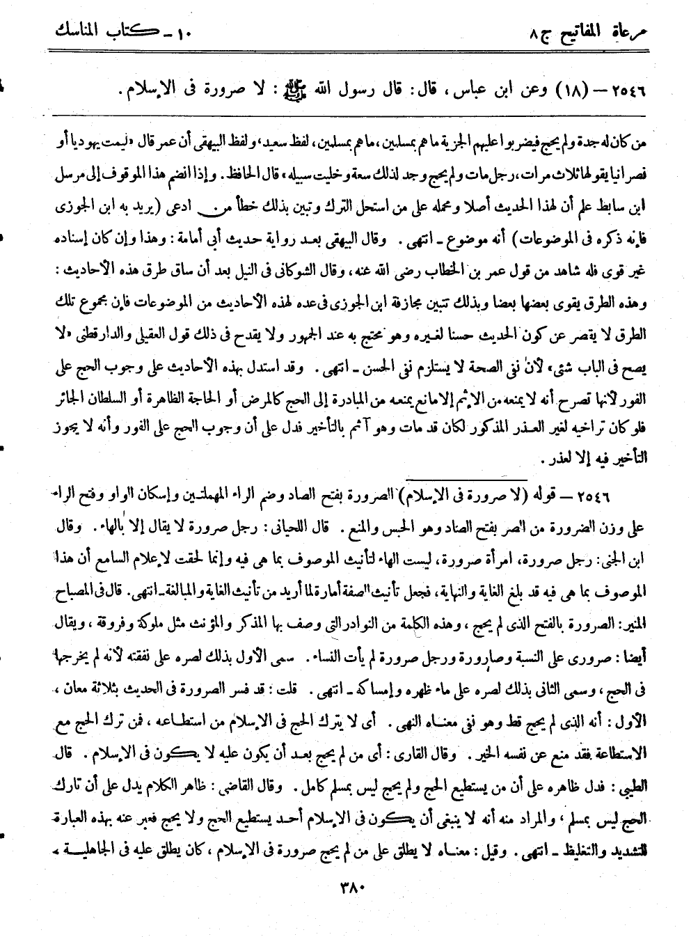 2546- (18) وعن ابن عباس قال: قال رسول الله - صلى الله عليه وسلم -: لا صرورة في الإِسلام.