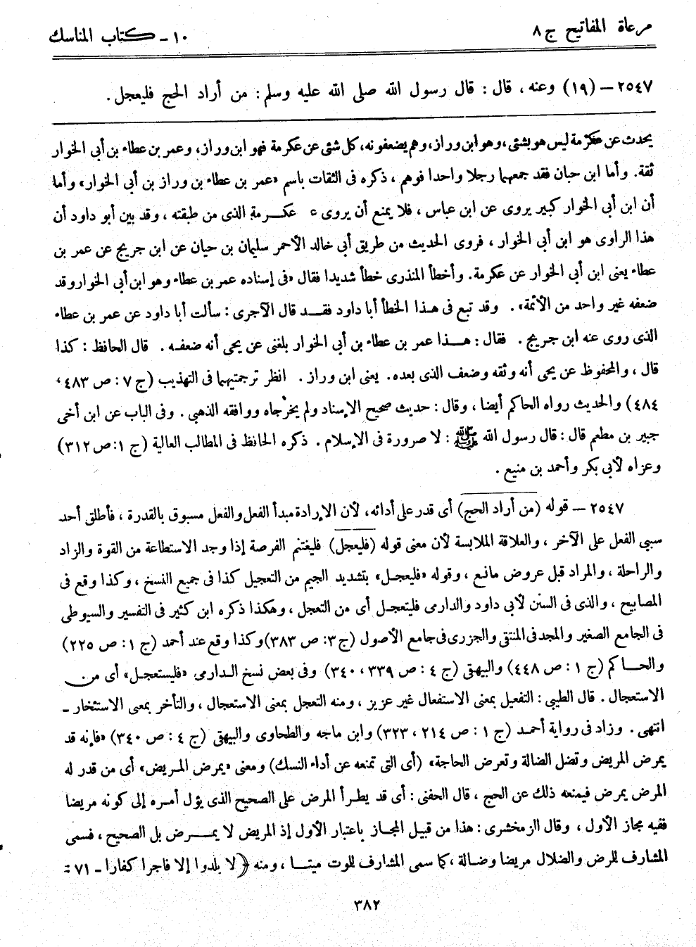 2547- (19) وعنه قال: قال رسول الله صلى الله عليه وسلم: من أراد الحج فليعجل.