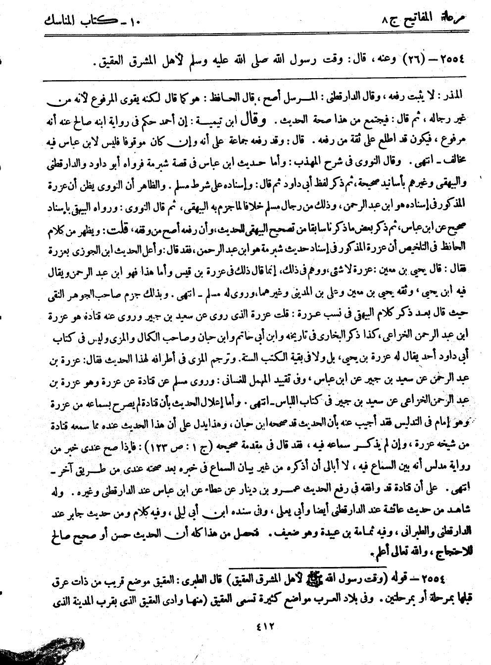 2554- (26) وعنه، قال: وقت رسول الله - صلى الله عليه وسلم - لأهل المشرق العقيق.