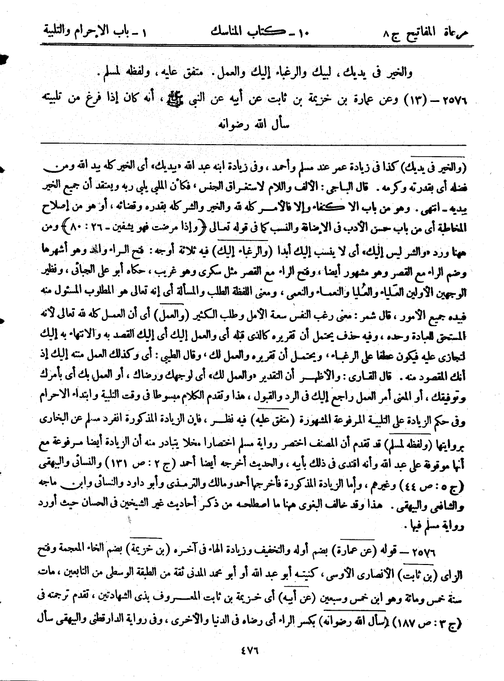 والخير في يديك، لبيك والرغباء إليك والعمل. متفق عليه، ولفظه لمسلم.