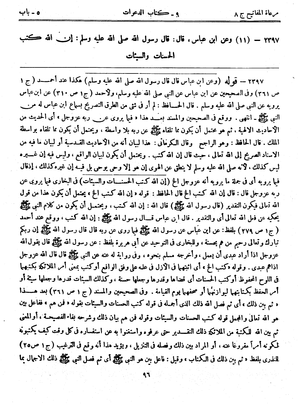 2397- (11) وعن ابن عباس، قال: قال رسول الله صلى الله عليه وسلم: إن الله كتب الحسنات والسيئات