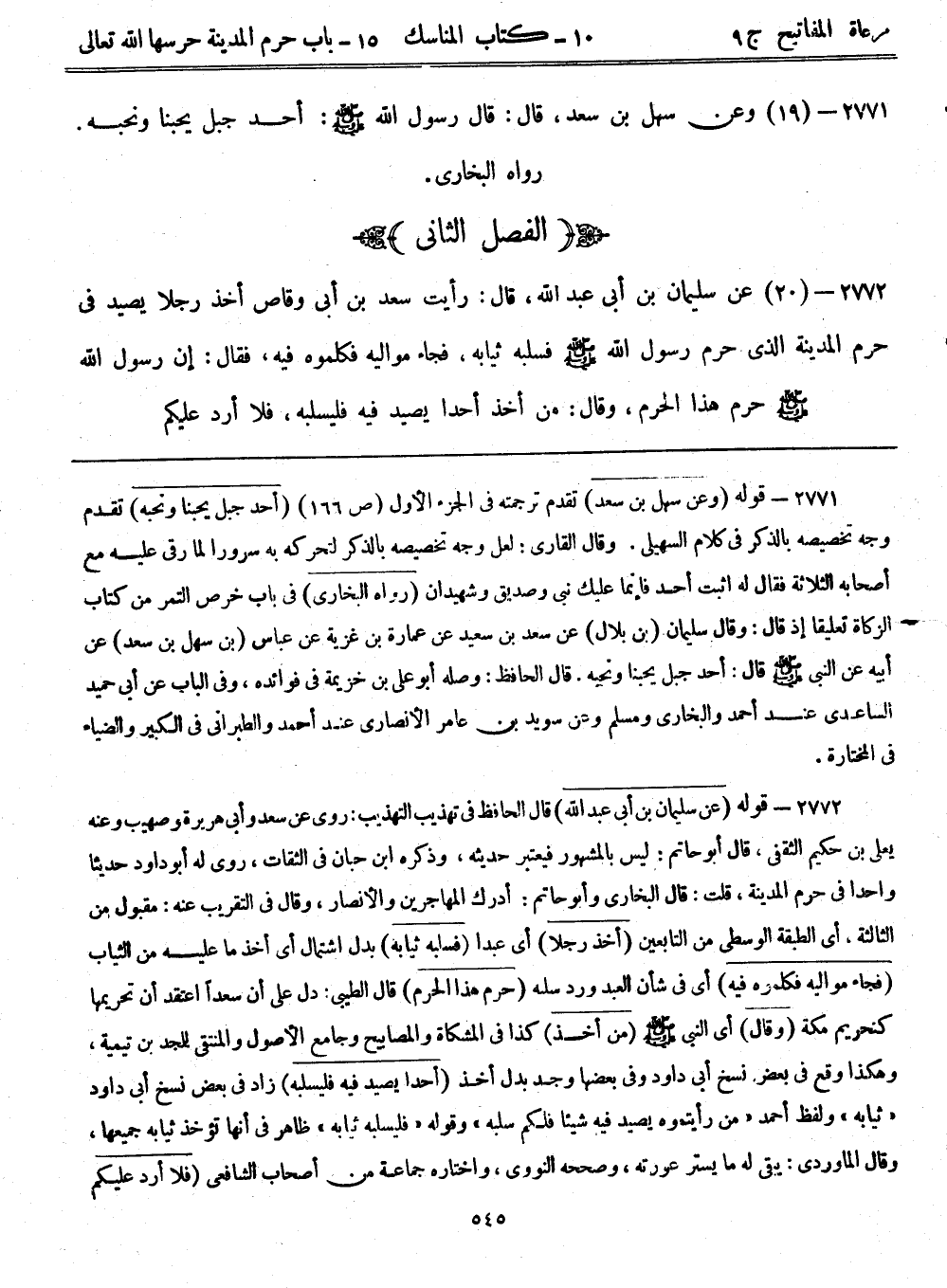 2771 – (19) وعن سهل بن سعد، قال: قال رسول الله - صلى الله عليه وسلم -: " أحد جبل يحبنا ونحبه ". رواه البخاري.
