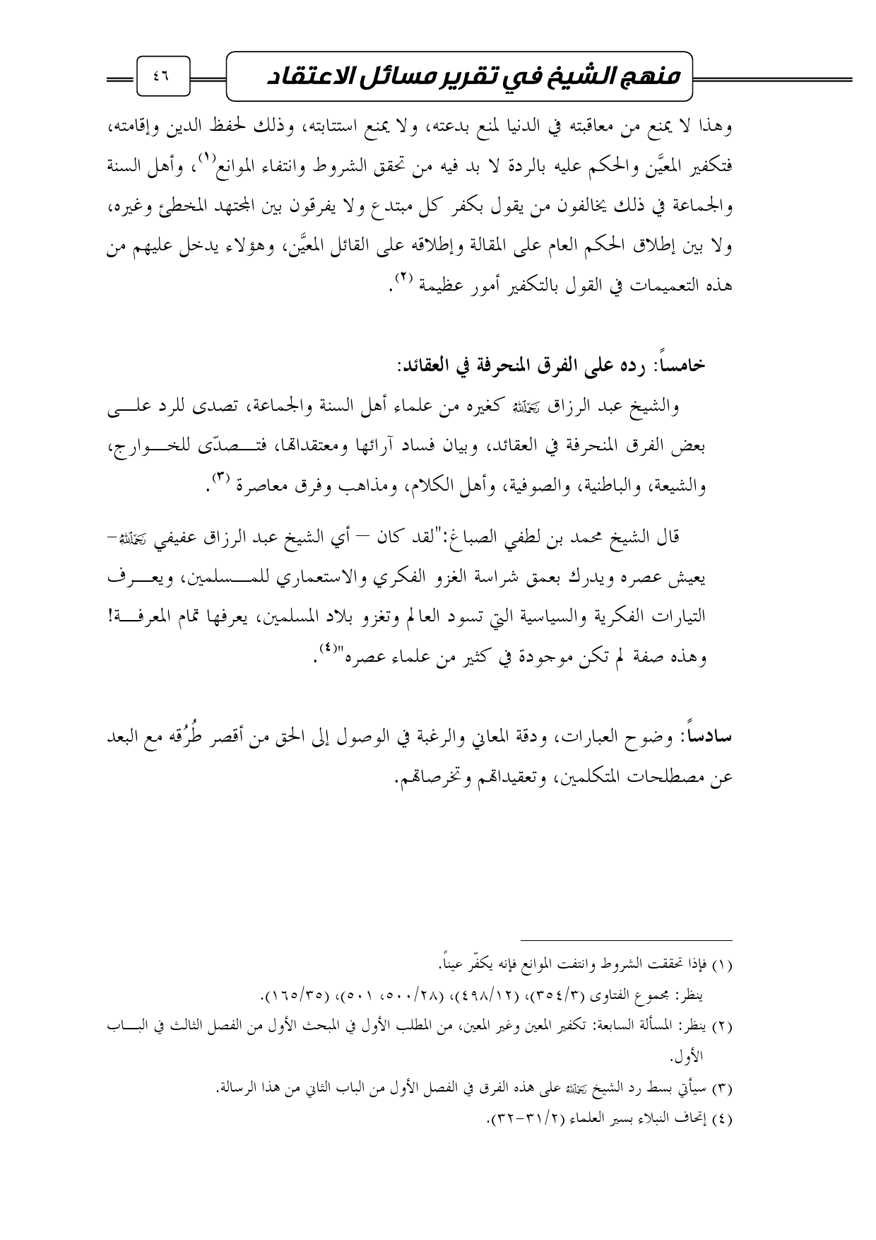 خامساً: رده على الفرق المنحرفة في العقائد: