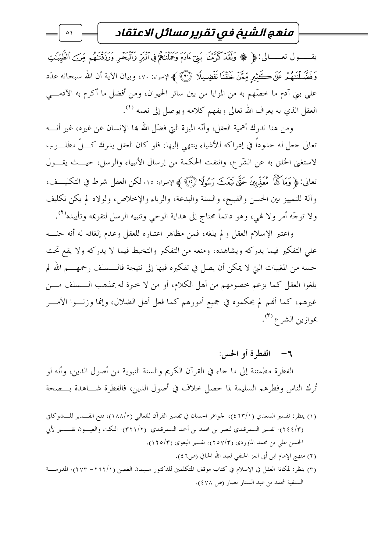 (¬3) ينظر: لمكانة العقل في الإسلام في كتاب موقف المتكلمين للدكتور سليمان الغصن (1/ 262 - 273)، المدرسة السلفية لمحمد بن عبد الستار نصار (ص 478).