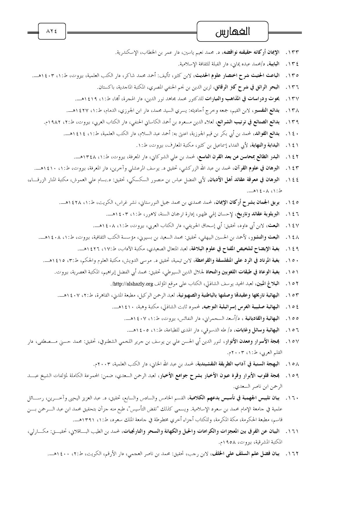 158 - البهجة السنية في آداب الطريقة النقشبندية، لمحمد بن عبد الله الخاني، دار الكتب العلمية، 2003 م.