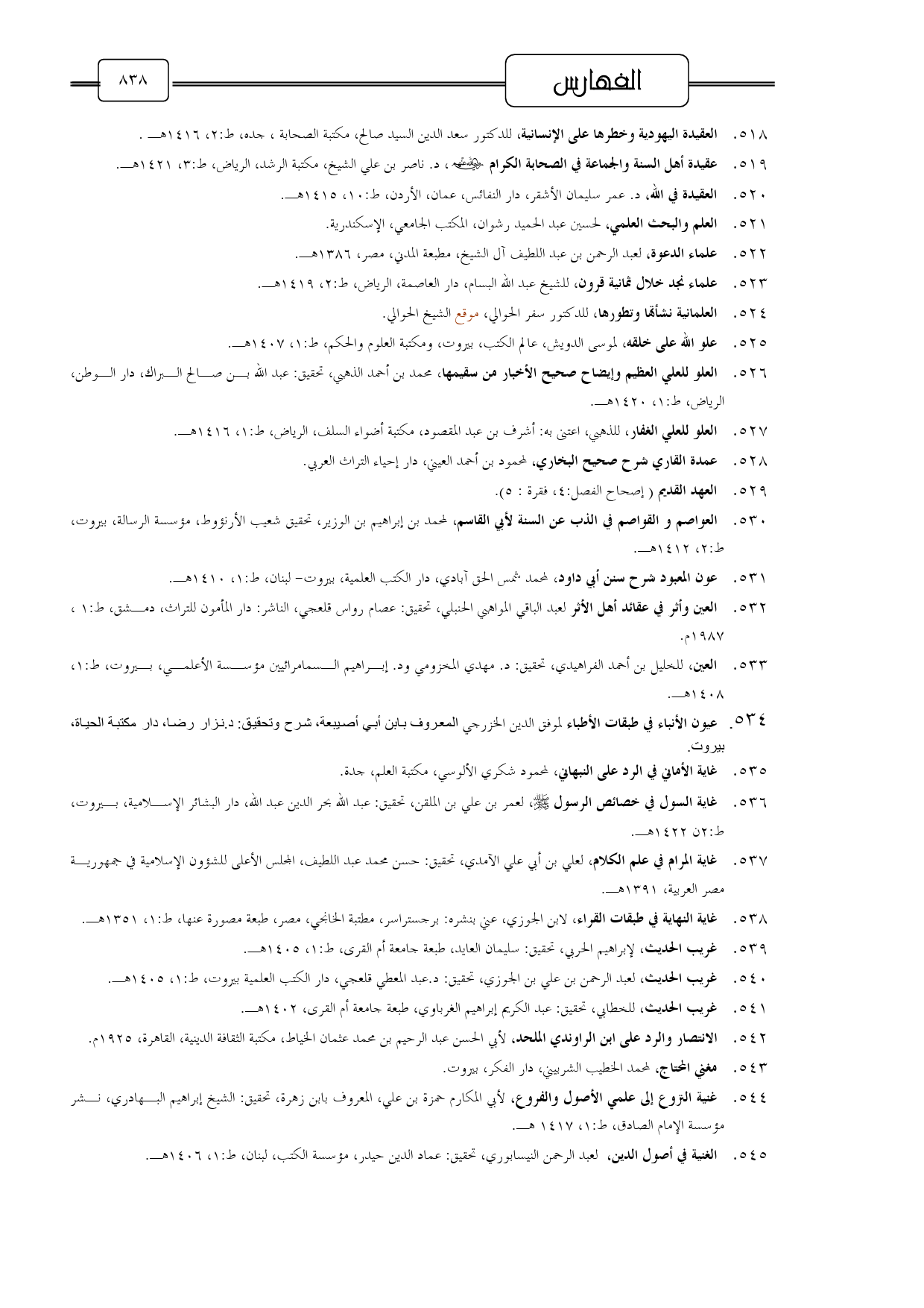 535 - غاية الأماني في الرد على النبهاني، لمحمود شكري الألوسي، مكتبة العلم، جدة.