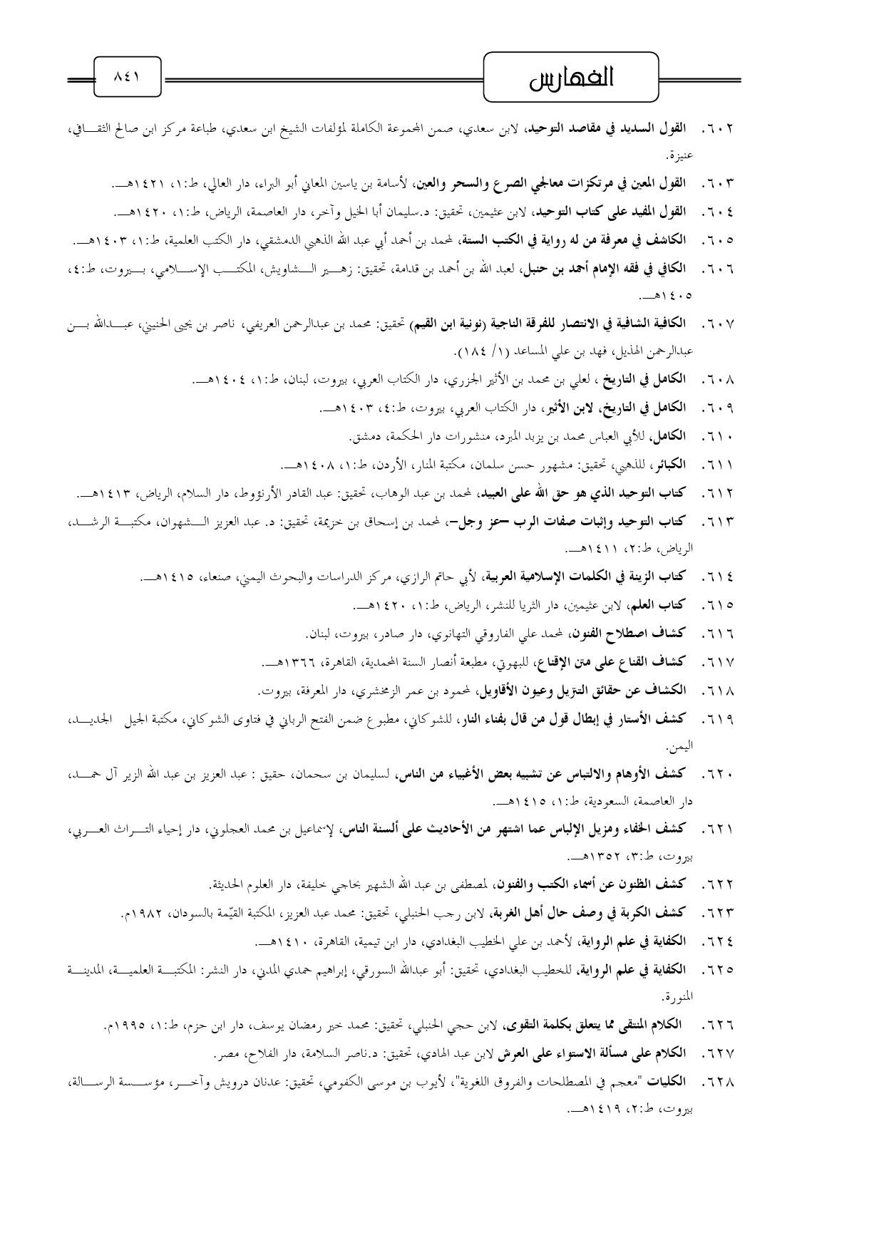 602 - القول السديد في مقاصد التوحيد، لابن سعدي، صمن المجموعة الكاملة لمؤلفات الشيخ ابن سعدي، طباعة مركز ابن صالح الثقافي، عنيزة.