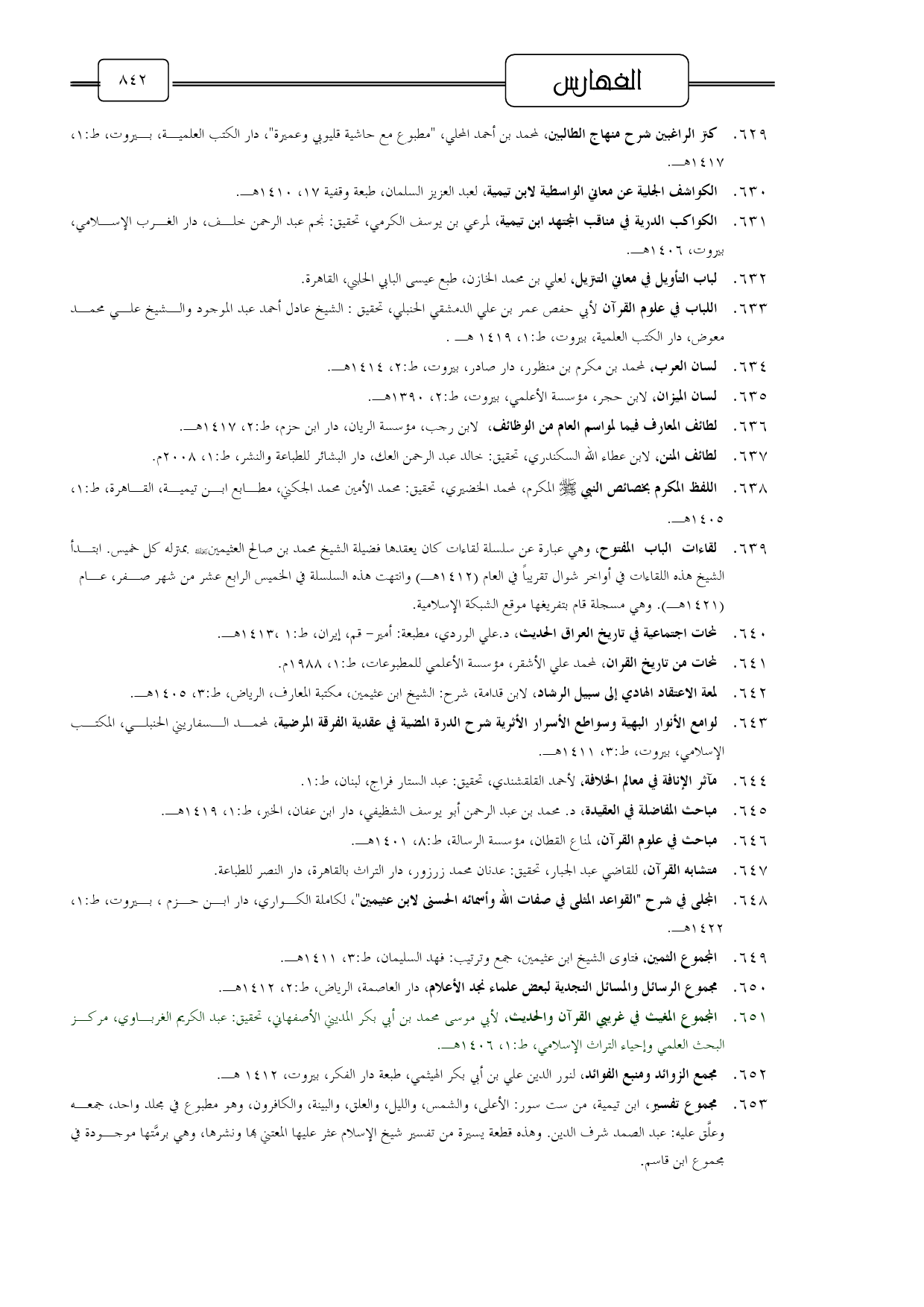 650 - مجموع الرسائل والمسائل النجدية لبعض علماء نجد الأعلام، دار العاصمة، الرياض، ط:2، 1412 هـ.