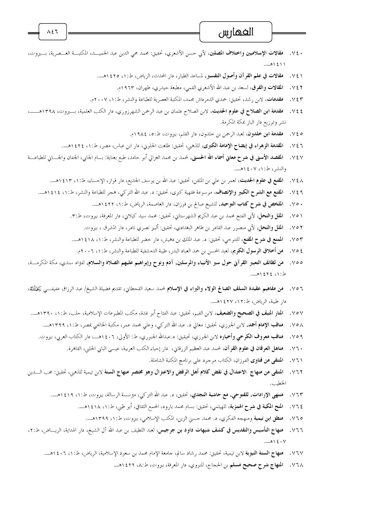 750 - الملخص في شرح كتاب التوحيد، للشيخ صالح بن فوزان، دار العاصمة، الرياض، ط:1، 1422 هـ.