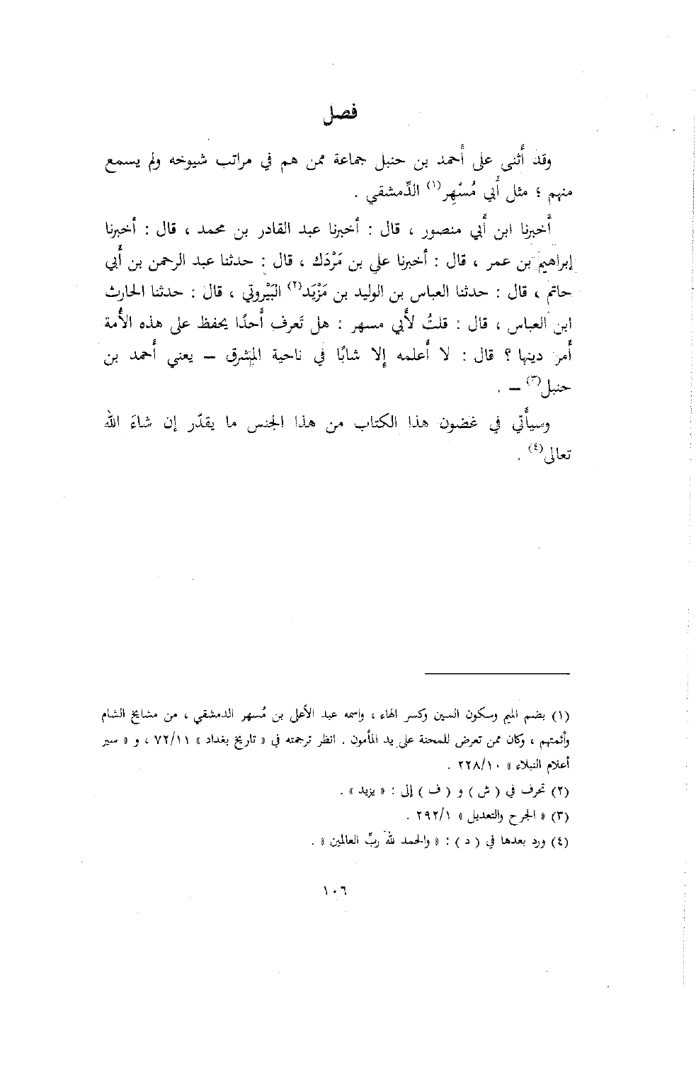 وقد أثنى على أَحمد بن حنبل جماعة ممن هم في مراتب شيوخه ولم يسمع منهم؛ مثل أَبي مُسْهِر الدِّمشقي.