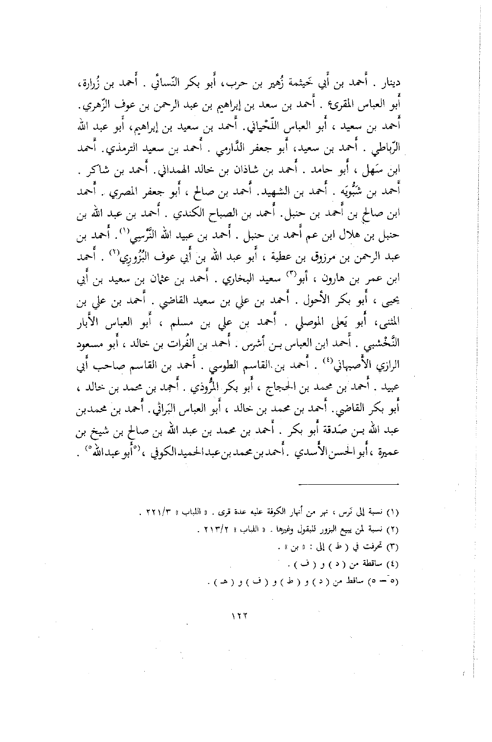 دينار. أَحمد بن أَبي خَيثمة زُهير بن حرب، أَبو بكر النّسائي. أَحمد بن زُرارة، أَبو العباس المقرئ. أَحمد بن سعد بن إبراهيم بن عبد الرحمن بن عوف الزّهري. أَحمد بن سعيد، أَبو العباس اللّحْياني. أَحمد بن سعيد بن إبراهيم، أَبو عبد الله الرّباطي. أَحمد بن سعيد، أَبو جعفر الدَّارمي. أَحمد بن سعيد الترمذي. أَحمد ابن سَهل، أَبو حامد. أَحمد بن شاذان بن خالد الهمداني. أَحمد بن شاكر. أَحمد بن شَبُّويَه. أَحمد بن الشهيد. أَحمد بن صالح، أَبو جعفر المصري. أَحمد ابن صالح بن أَحمد بن حنبل. أَحمد بن الصباح الكندي. أَحمد بن عبد الله بن حنبل بن هلال ابن عم أحمد بن حنبل. أَحمد بن عبيد الله النَّرْسِي. أَحمد بن عبد الرحمن بن مرزوق بن عطية، أَبو عبد الله بن أَبي عوف البُزُورِي. أَحمد ابن عمر بن هارون، أبو سعيد البخاري. أحمد بن عثمان بن سعيد بن أَبي يحيى، أبو بكر الأحول. أَحمد بن علي بن سعيد القاضي. أَحمد بن علي بن المثنى، أَبو يَعلى الموصلي. أَحمد بن علي بن مسلم، أَبو العباس الأَبار النَّخْشبي. أَحمد ابن العباس بن أشرس. أحمد بن الفُرات بن خالد، أَبو مسعود الرازي الأَصبهاني. أَحمد بن القاسم الطوسي. أَحمد بن القاسم صاحب أَبي عبيد. أَحمد بن محمد بن الحجاج، أَبو بكر المرُّوذي. أَحمد بن محمد بن خالد، أَبو بكر القاضي. أَحمد بن محمد بن خالد، أَبو العباس البَراثي. أَحمد بن محمد بن عبد الله بن صَدقة أَبو بكر. أَحمد بن محمد بن عبد الله بن صالح بن شيخ بن عميرة، أَبو الحسن الأَسدي. أَحمد بن محمد بن عبد الحميد الكوفي، أَبو عبد الله.