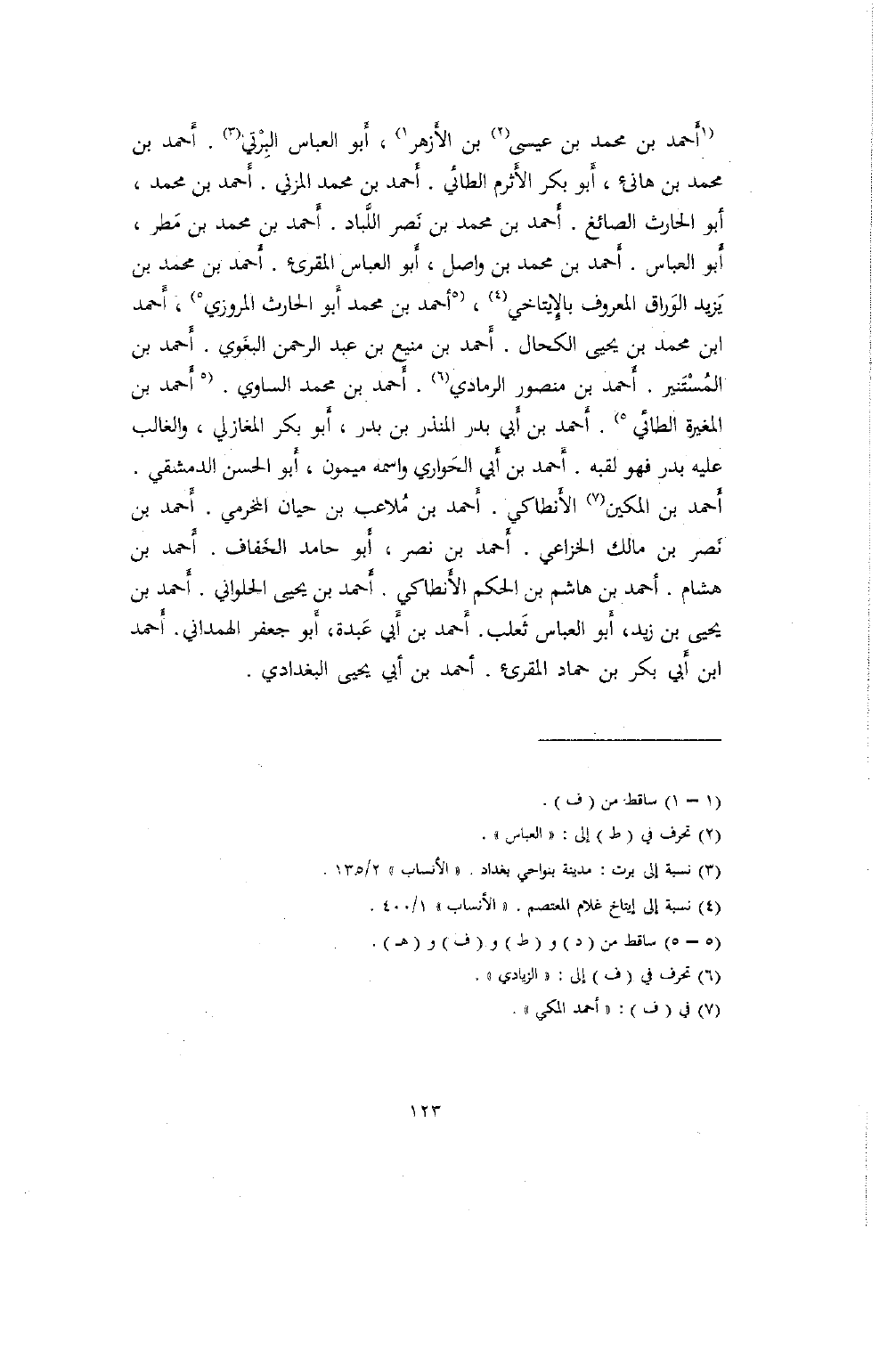 أَحمد بن محمد بن عيسى بن الأَزهر، أَبو العباس البِرْتي. أَحمد بن محمد بن هانئ، أَبو بكر الأَثرم الطائي. أَحمد بن محمد المزني. أَحمد بن محمد، أبو الحارث الصائغ. أَحمد بن محمد بن نَصر اللَّباد. أَحمد بن محمد بن مَطر، أَبو العباس. أَحمد بن محمد بن واصل، أَبو العباس المقرئ. أَحمد بن محمد بن يَزيد الوَراق المعروف بالإِيتاخي، أحمد بن محمد أَبو الحارث المروزي، أَحمد ابن محمد بن يحيى الكحال. أَحمد بن منيع بن عبد الرحمن البغَوي. أَحمد بن المُسْتَنير. أَحمد بن منصور الرمادي. أَحمد بن محمد الساوي. أَحمد بن المغيرة الطائي. أَحمد بن أَبي بدر المنذر بن بدر، أَبو بكر المغازلي، والغالب عليه بدر فهو لقبه. أَحمد بن أَبي الحَواري واسمه ميمون، أَبو الحسن الدمشقي. أَحمد بن المكين الأَنطاكي. أحمد بن مُلاعب بن حيان المخرمي. أَحمد بن نَصر بن مالك الخزاعي. أَحمد بن نصر، أَبو حامد الخَفاف. أَحمد بن هشام. أحمد بن هاشم بن الحكم الأنطاكي. أَحمد بن يحيى الحلواني. أَحمد بن يحيى بن زيد، أَبو العباس ثَعلب. أَحمد بن أَبي عَبدة، أَبو جعفر الهمداني. أَمد ابن أَبي بكر بن حماد المقرئ. أحمد بن أبي يحيى البغدادي.