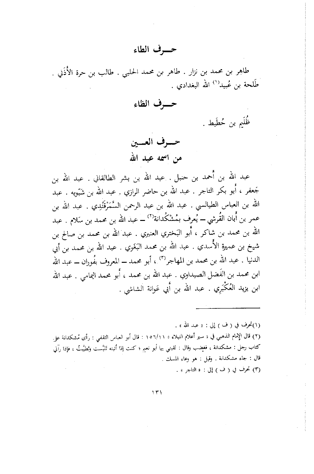 طاهر بن محمد بن نزار. طاهر بن محمد الحلبي. طالب بن حرة الأَذَني. طَلحة بن عُبيد الله البغدادي.