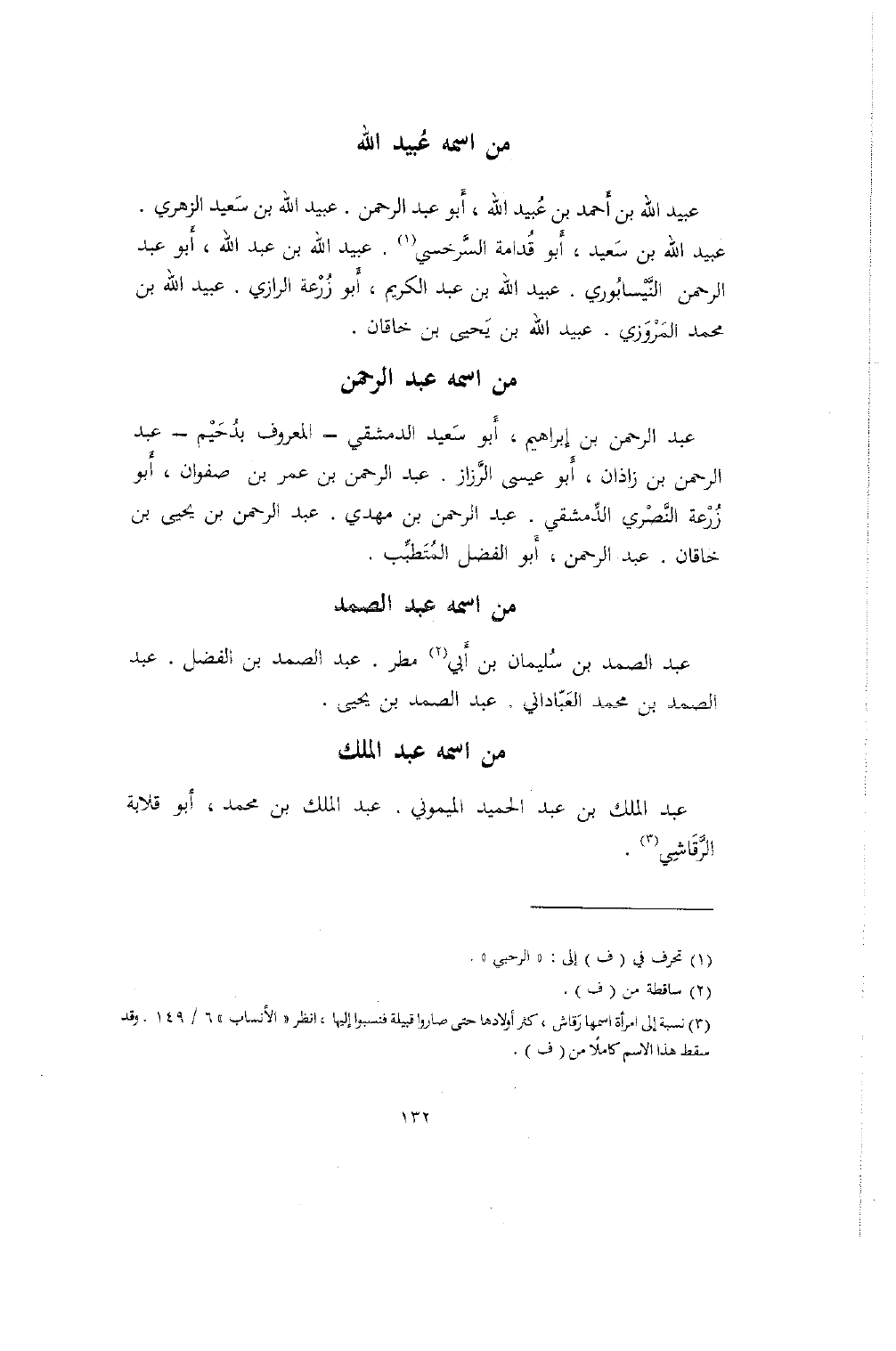 عبد الرحمن بن إبراهيم، أَبو سَعيد الدمشقي- المعروف بدُحَيْم- عبد الرحمن بن زاذان، أَبو عيسى الرَّزاز. عبد الرحمن بن عمر بن صفوان، أَبو زُرْعة النَّصْري الدِّمشقي. عبد الرحمن بن مهدي. عبد الرحمن بن يحيى بن خاقان. عبد الرحمن، أَبو الفضل المُتَطبِّب.