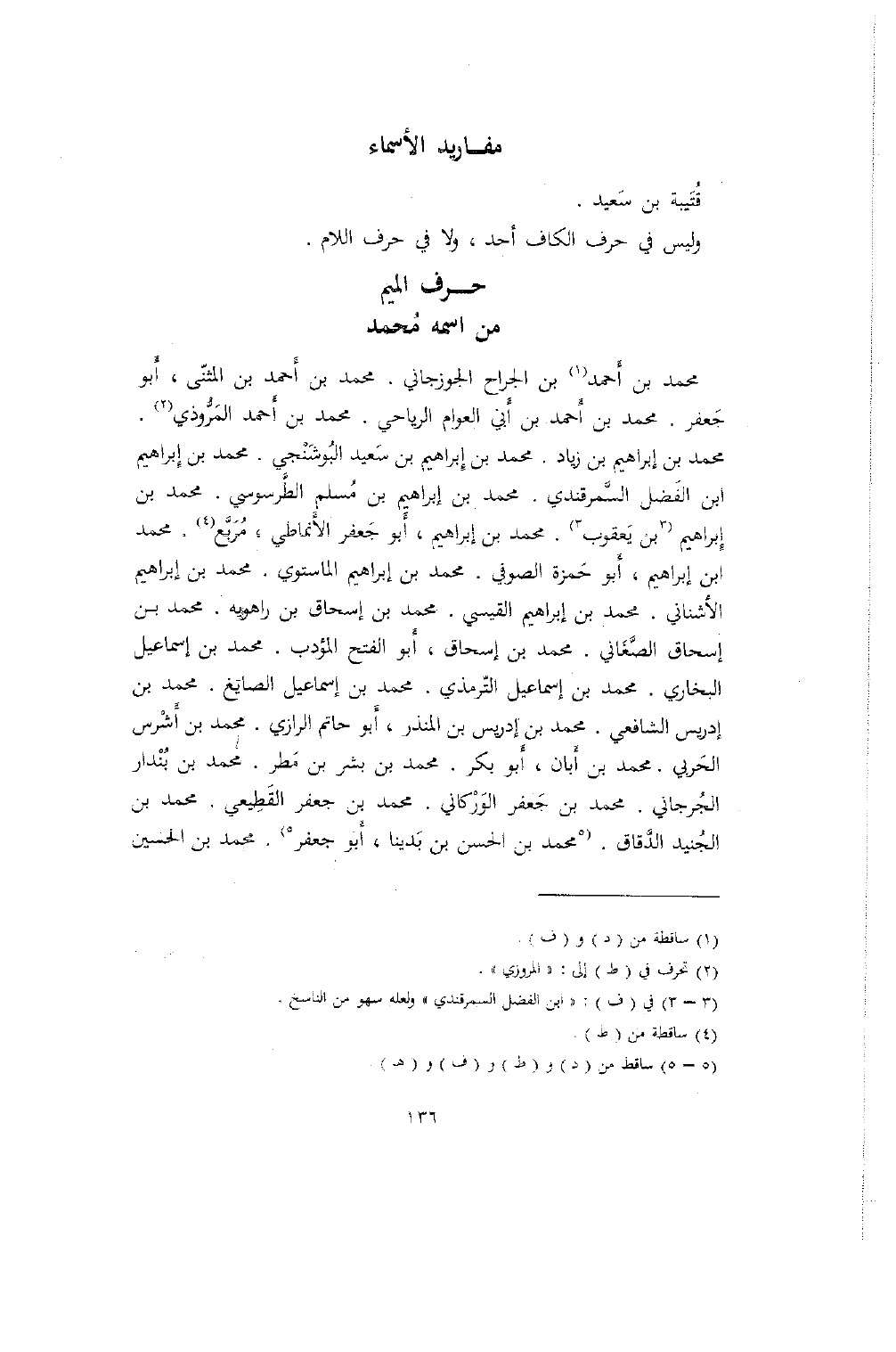 محمد بن أحمد بن الجراح الجوزجاني. محمد بن أَحمد بن المثنّى، أَبو جَعفر. محمد بن أَحمد بن أَبي العوام الرياحي. محمد بن أَحمد المَرُّوذي. محمد بن إِبراهيم بن زياد. محمد بن إبراهيم بن سَعيد البُوشَنْجي. محمد بن إبراهيم ابن الفَضل السَّمرقندي. محمد بن إبراهيم بن مُسلم الطَّرسوسي. محمد بن إِبراهيم بن يَعقوب. محمد بن إبراهيم، أَبو جَعفر الأَنماطي، مُرَبَّع، محمد ابن إبراهيم، أَبو حَمزة الصوفي. محمد بن إبراهيم المساتوي. محمد بن إبراهيم الأشناني. محمد بن إبراهيم القيسي. محمد بن إسحاق بن راهويه. محمد بن إسحاق الصَّغَاني. محمد بن إسحاق، أَبو الفتح المؤدب. محمد بن إسماعيل البخاري. محمد بن إسماعيل التّرمذي. محمد بن إسماعيل الصايَغ. محمد بن إدريس الشافعي. محمد بن إدريس بن المنذر، أَبو حاتم الرازي. محمد بن أَشْرس الحَربي. محمد بن أَبان، أَبو بكر. محمد بن بشر بن مَطر. محمد بن بُنْدار الجُرجاني. محمد بن جَعفر الوَرْكاني. محمد بن جعفر القَطِيعي. محمد بن الجُنيد الدَّقاق. محمد بن الحسن بن بَدينا، أَبو جعفر. محمد بن الحسين