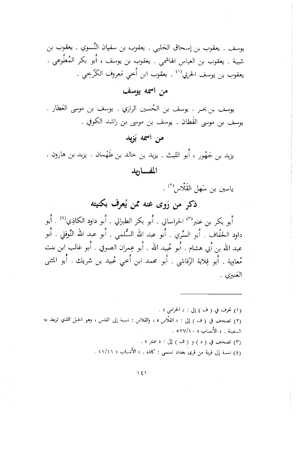 يوسف بن بحر. يوسف بن الحُسين الرازي. يوسف بن موسى العَطار. يوسف بن موسى القَطان. يوسف بن موسى بن راشد الكوفي.